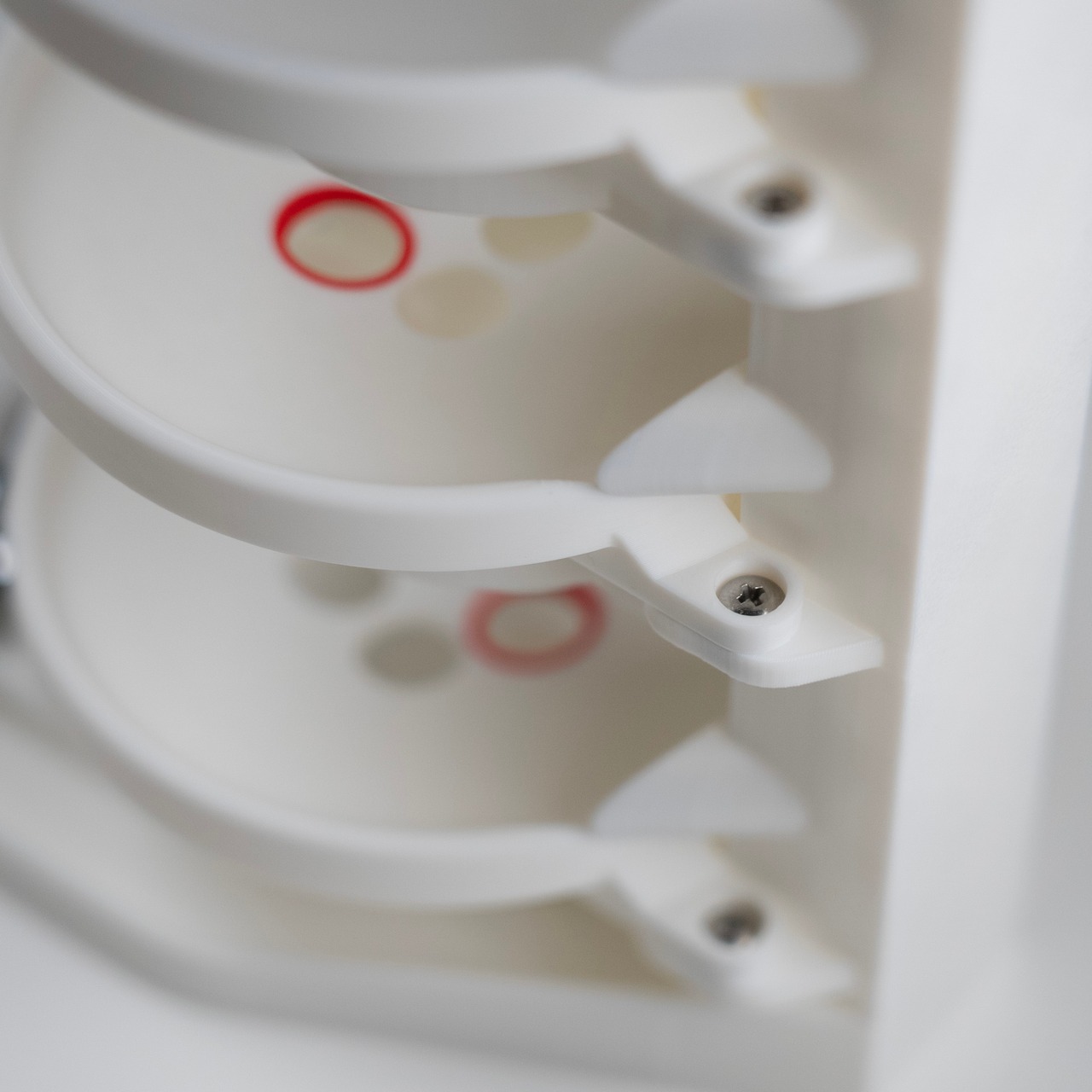 前作は造形の都合で、当たり穴の赤いマークは円形ステッカーを丁寧に貼り付ける方式をとっておりました。今作は赤いマークもクルーンの素材と一体になっており、見た目がスマートに。剥がれや抽選の妨げになるリスクを無くしました。